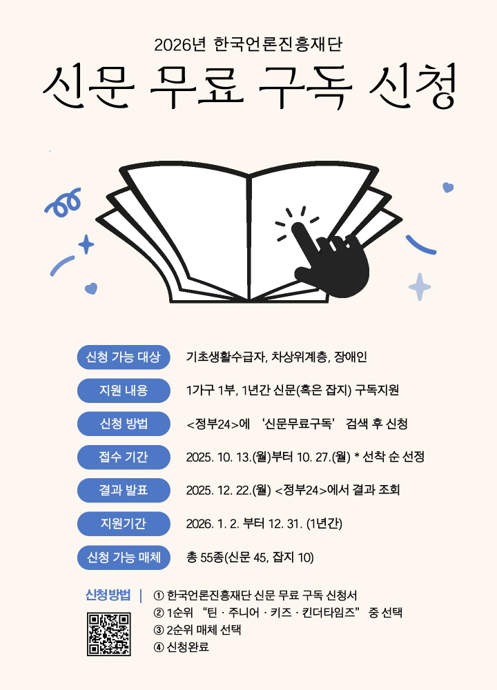 2026년 한국언론진흥재단 신문 무료 구독 신청